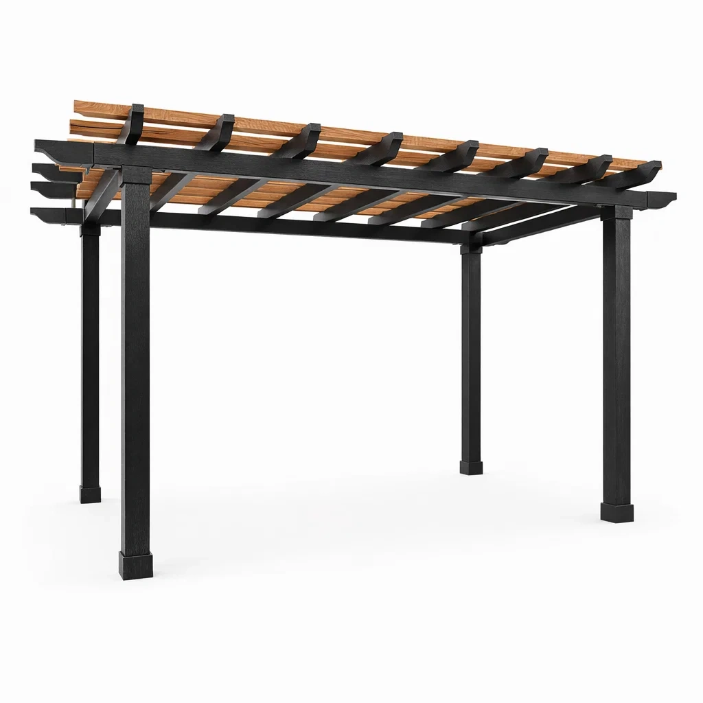 Pergola en métal et bois anthracite