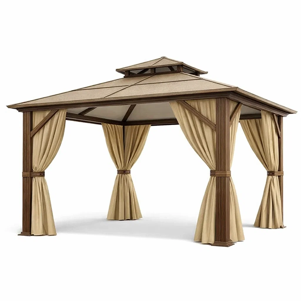 Pavillon de jardin avec structure en bois et tissu en polyester beige